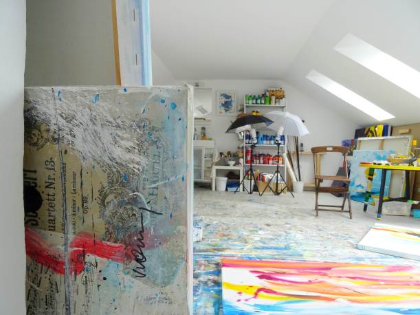 Und wer will, darf jetzt gern einmal in mein Atelier blinzeln. And who wants, may now like to blink in my studio.